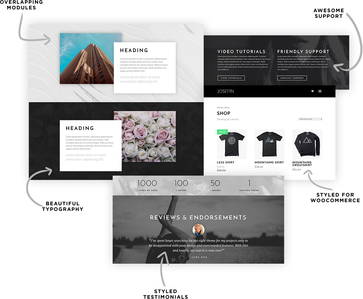 Divi comes with some nice animation options that can easily be overused. Josefin uses Divi’s animations in a subtle & effective way portraying elegance & class.